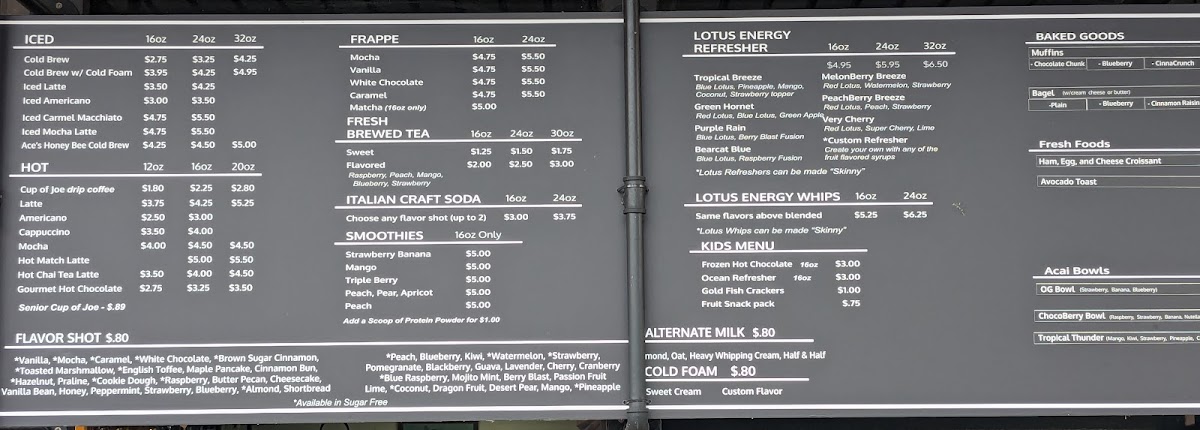 The food options lean toward fresh and wholesome, featuring items like avocado toast and vibrant açaí bowls that pair well with the coffee selections. Drinks range from classic cold brews and lattes to inventive refreshments such as the Brown Sugar Shakin' Espresso or the Tropical Breeze Lotus Whip. Non-coffee alternatives like matcha lattes and craft sodas add variety to accommodate different tastes and moods.